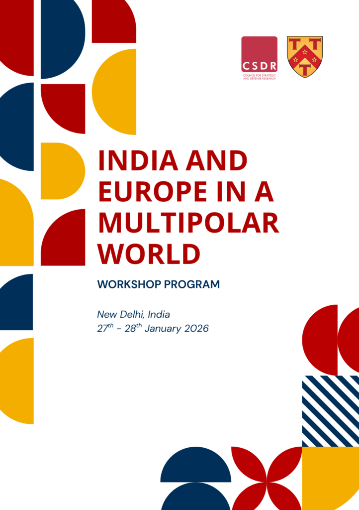 The discussions are anchored in the renewed momentum generated by the European Commission’s visit to New Delhi in February 2025 and the adoption of a new Strategic EU India Agenda. The workshop will evaluate prospects for deeper cooperation across trade, technology, security, and defense, while also addressing persistent divergences arising from the Russia Ukraine war, differing threat perceptions, China’s growing assertiveness, and shifting U.S. policies. Particular attention will be paid to whether India and Europe can translate shared interests into sustained strategic coordination amid these constraints.